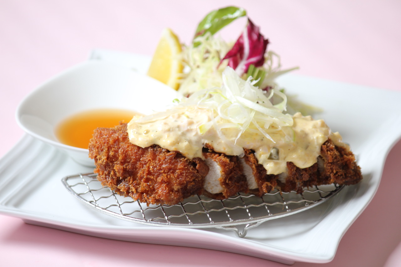 Sliced pork sirloin meat, coated in batter and deep-fried.