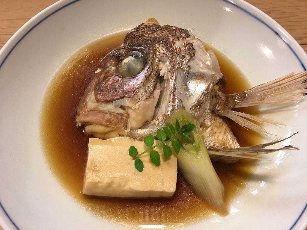 The head and/or tail of a seabream, simmered in sake or mirin with other flavorings.