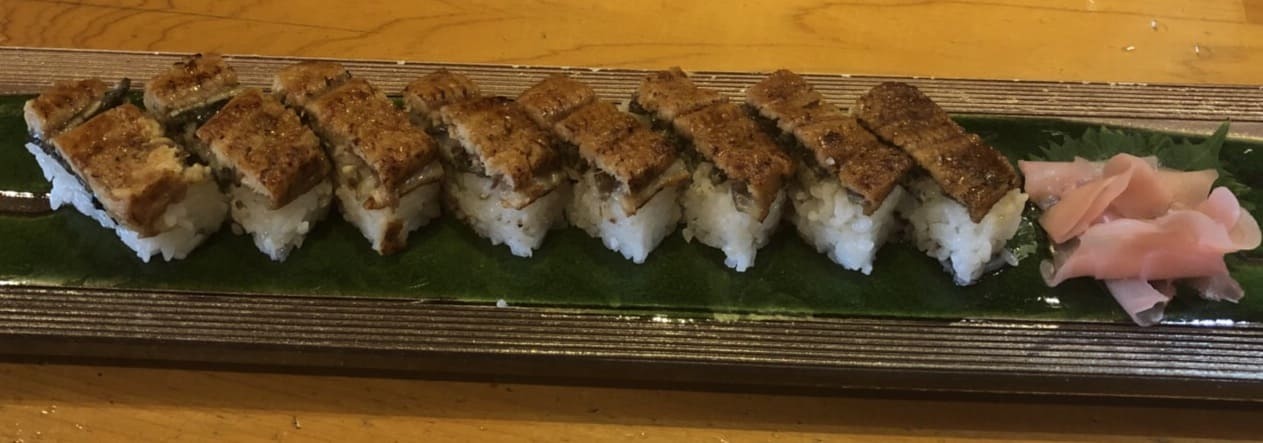 Conger eel, Cucumber, Spinach, Shiitake, Nori, Vinegared rice, Shrimp