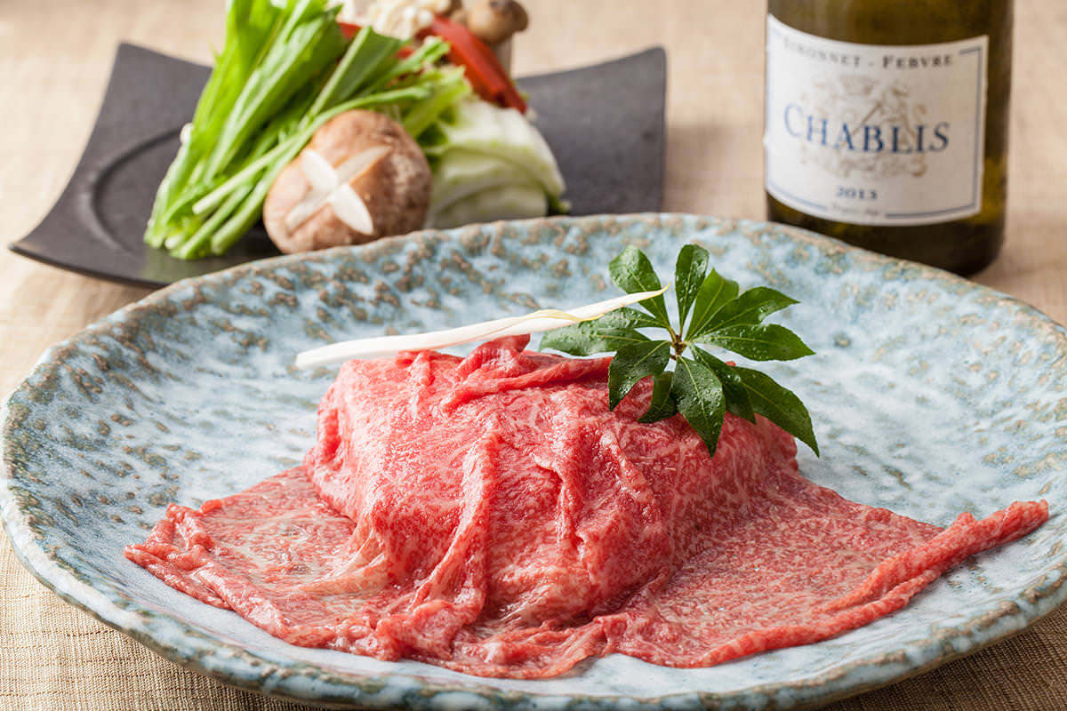 Beef loin, Garland chrysanthemum, Japanese leek, Shiitake, Hen's egg, Konjac noodles, Tofu