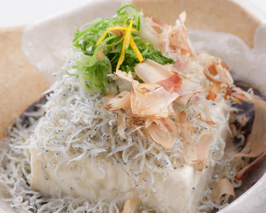 Boiled and dried baby sardine, Tofu, Yuzu, Scallion/Green onion/Leek, Dried bonito