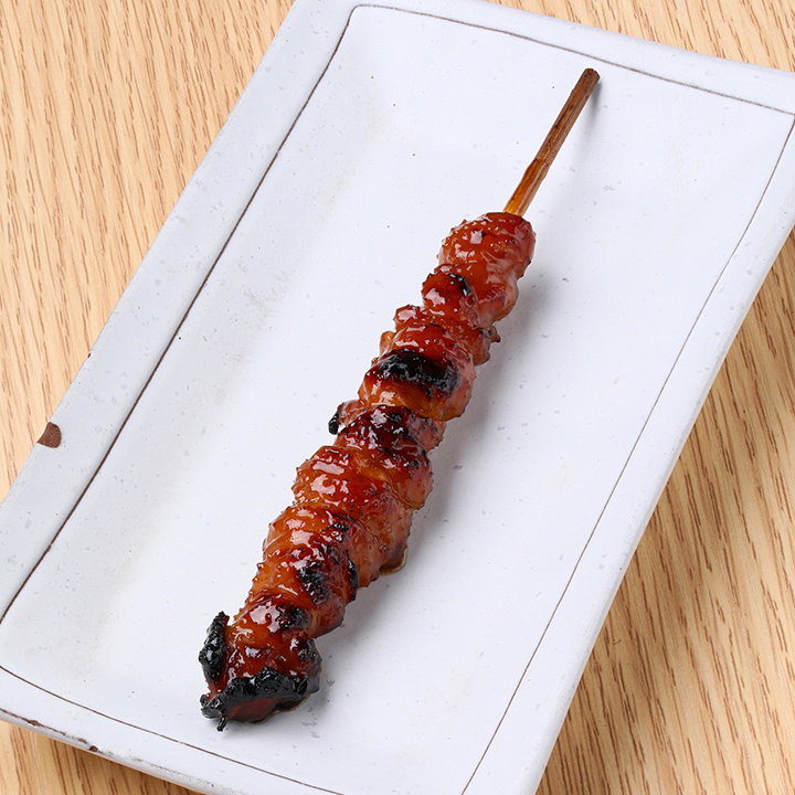 Seasoned tsunagi (artereys connected to heart and liver) skwered and roasted over an open flame.