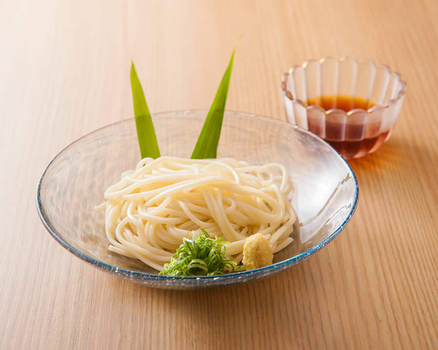 Thinly cut raw tuna served with soy sauce.