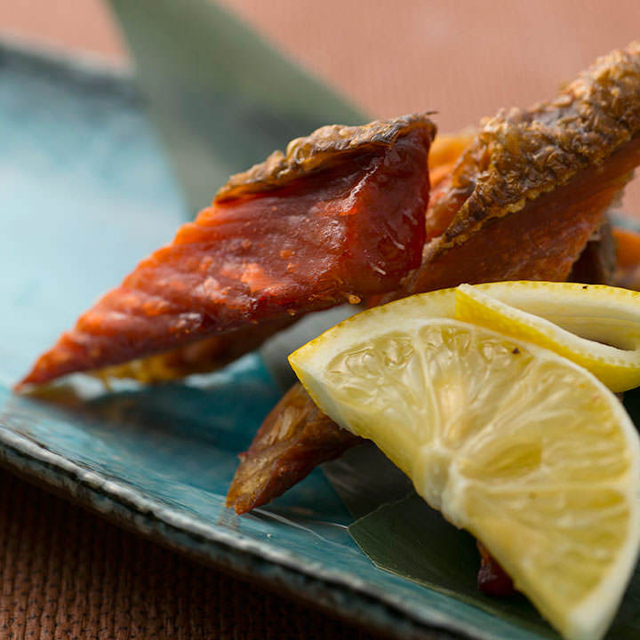 Thinly cut raw tuna served with soy sauce.