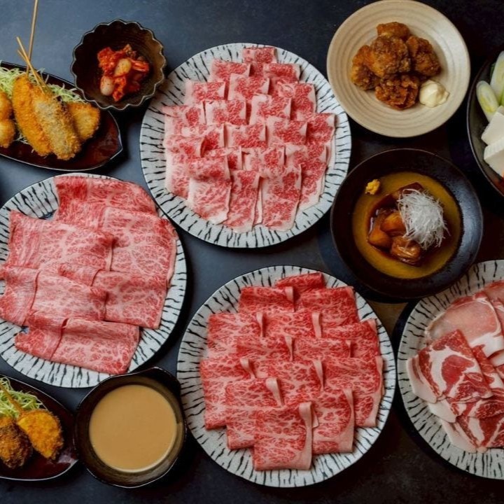 Each group may select one type of sukiyaki or shabu-shabu. (This is a communal style where everyone shares a pot, rather than individual pots for each person.)