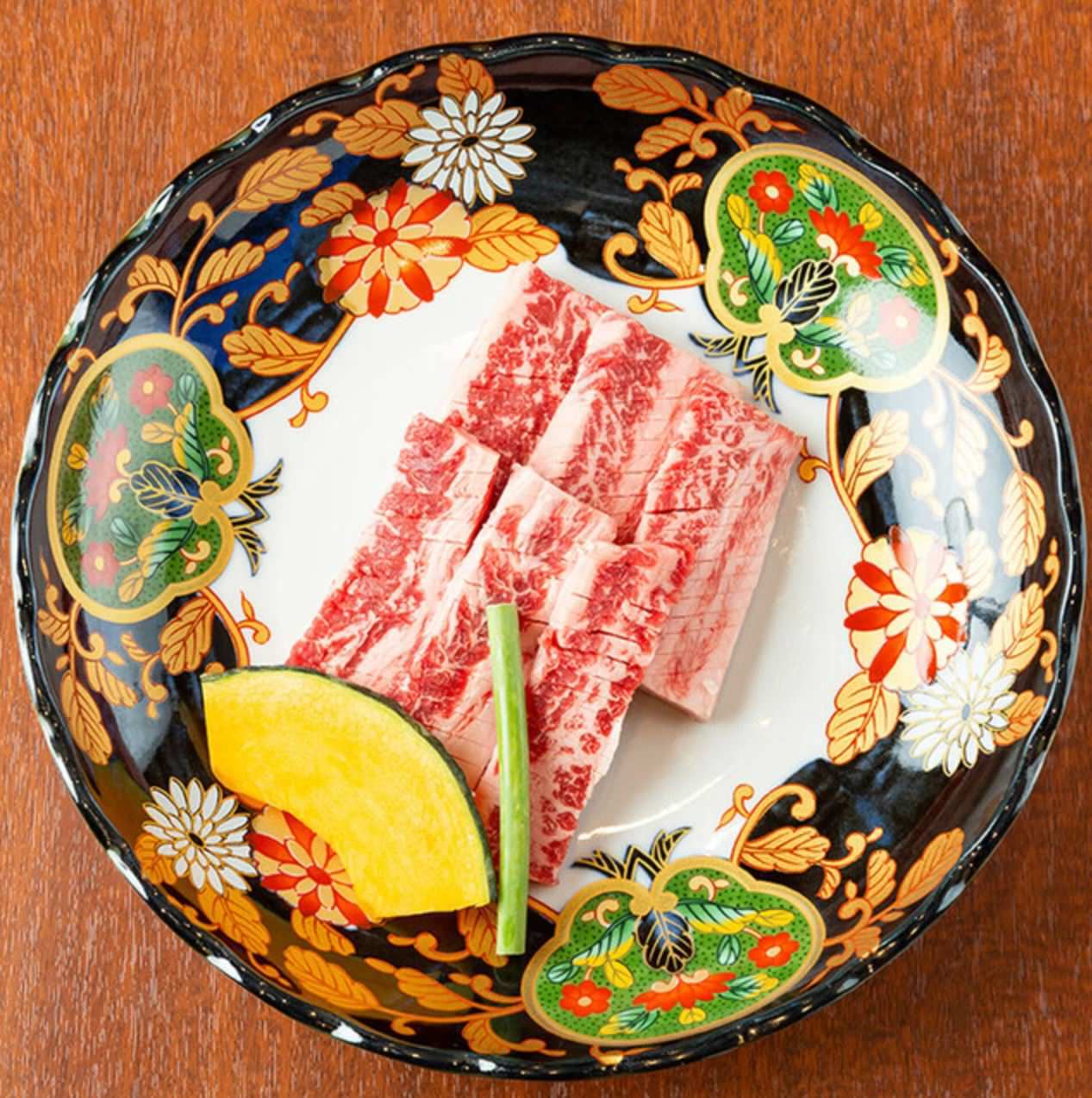 A meat dish prepared from extra premium rank beef surrounding the rib portion of a cow, called bara.