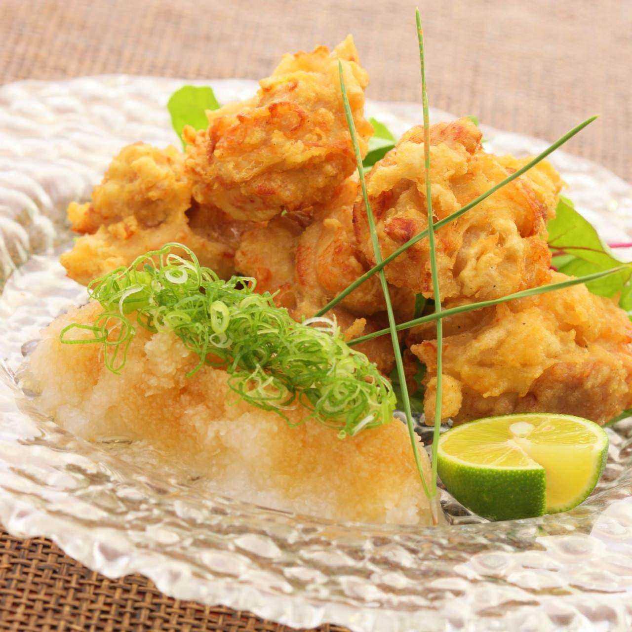 Cake of minced pork or beef kneaded together with onion, coated in batter and deep-fried.
