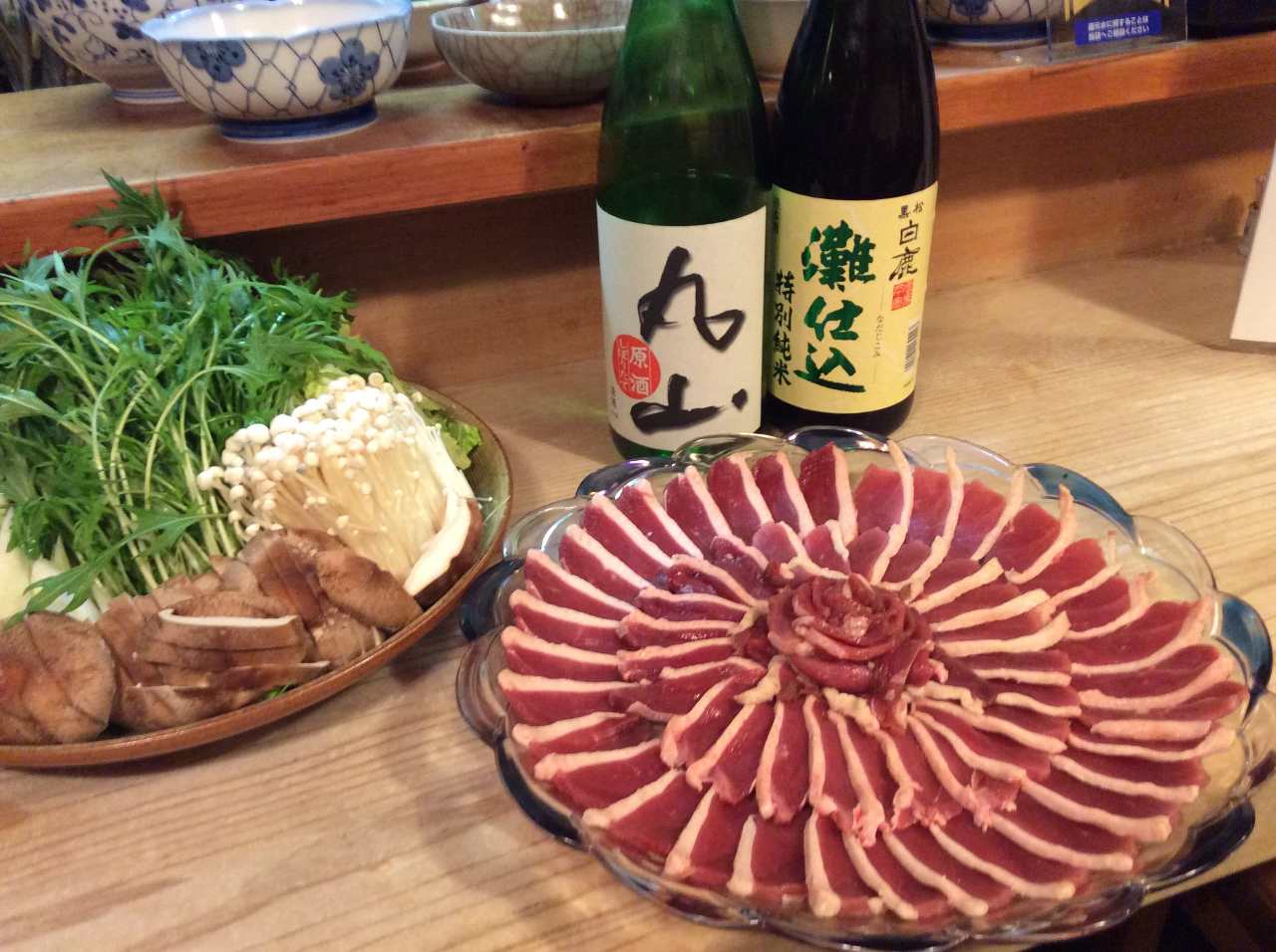 Duck meat, Chinese cabbage, Japanese leek, Mushroom