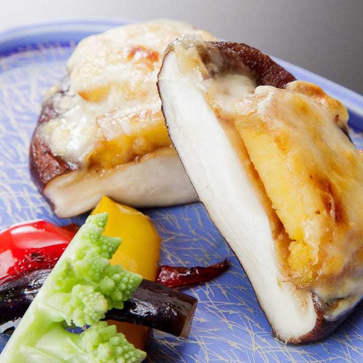 てんけいこ椎茸の野菜詰めカチョカヴァッロチーズ焼