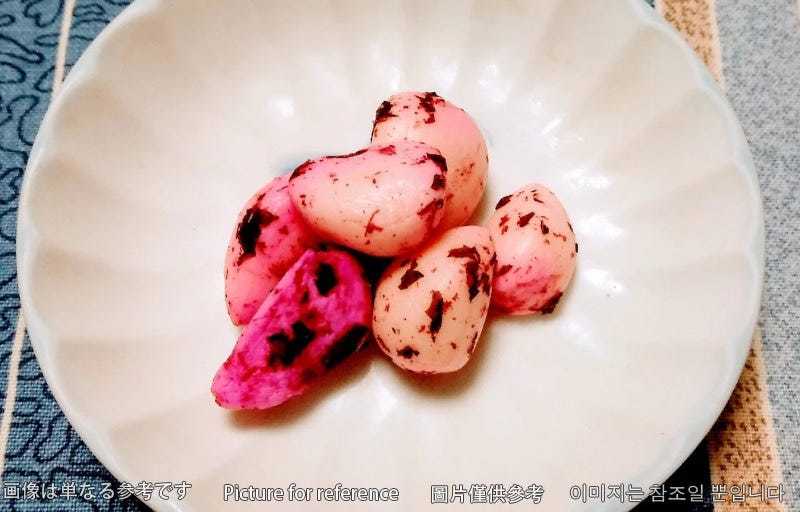Cubed, bite-sized daikon radish marinated in kimchi seasonings.