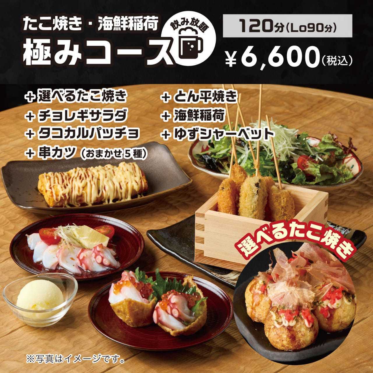 | Menu Info | Create your own original takoyaki. Choose your favorite ingredients to make a special dish just for you. You can choose toppings other than octopus, so vegetarians can also enjoy takoyaki. You can choose up to 3 toppings. (Toppings) Leek / Shrimp / Squid / Kimchi / Rice cake / Shiso leaf / Sakura shrimp / Chikuwa / Umeboshi / Cheese / Fluffy cheese / Corn |
