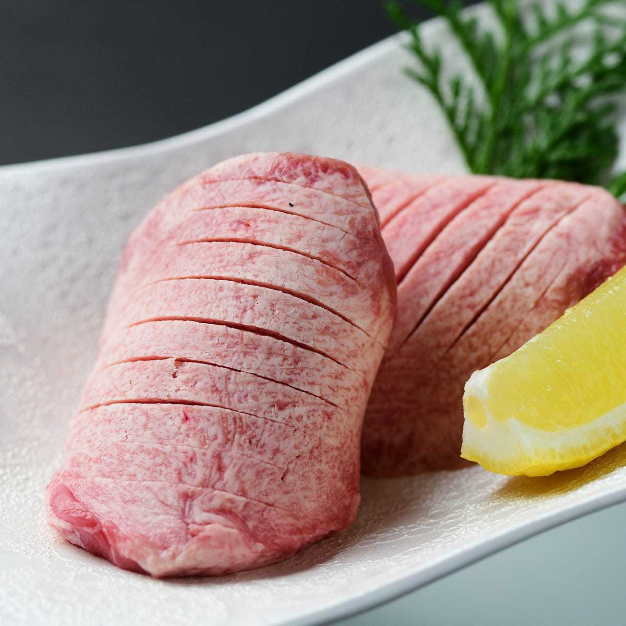 A meat dish prepared from extra premium rank meat from a cow's tongue called tan.