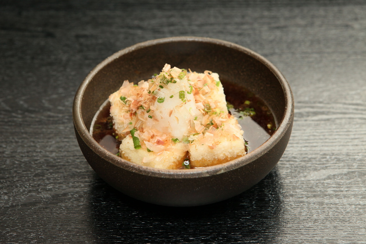 A dish where 'dashi' stock soup is poured over deep-fried tofu.