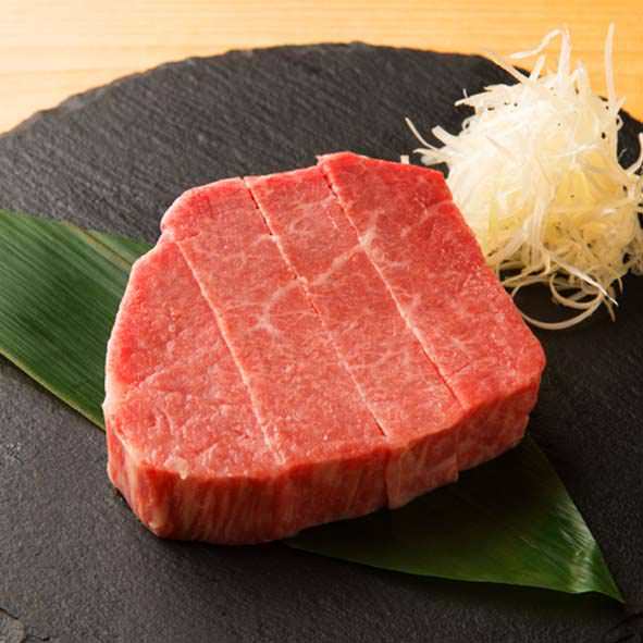 A meat dish prepared by using the thickest rare part from the center of Wagyu beef hire (a cut from the lower back).
