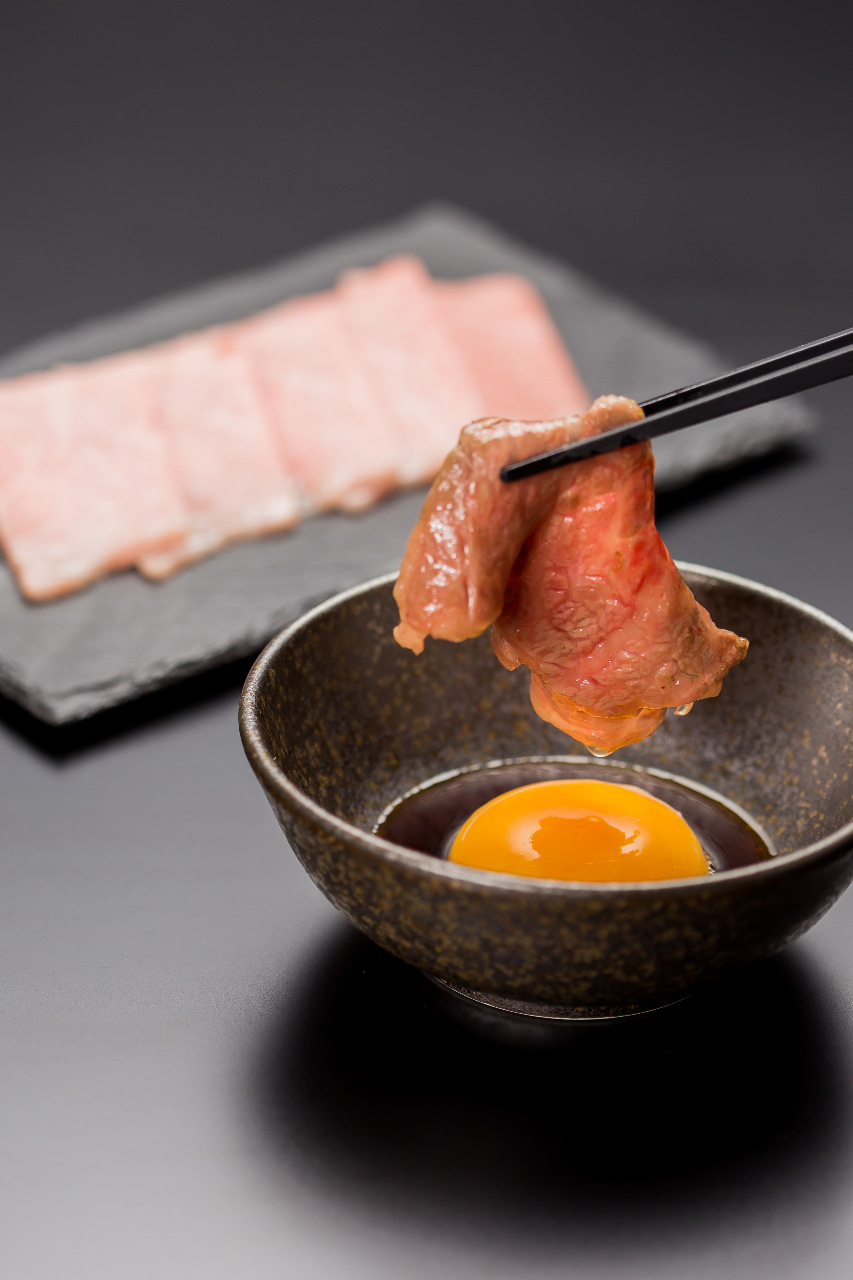 Wagyu beef that has been grilled on a hot griddle or shallow pan is simmered in soy sauce and sugar to make it sweet and salty.