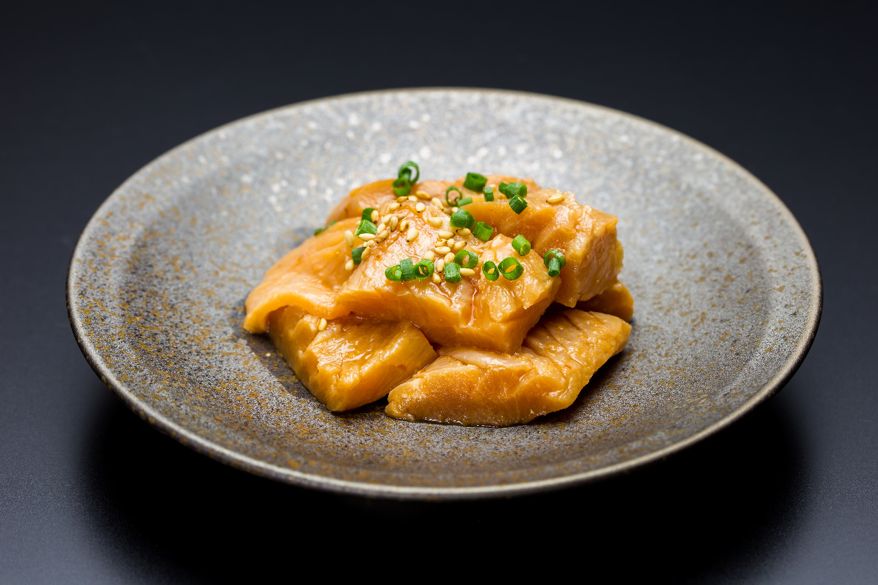 Salted cod innards seasoned with sesame oil and chilli pepper, etc.