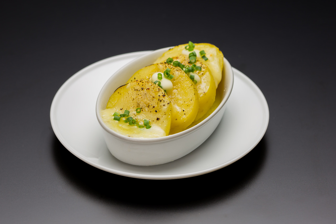 Steamed potato grilled with cheese