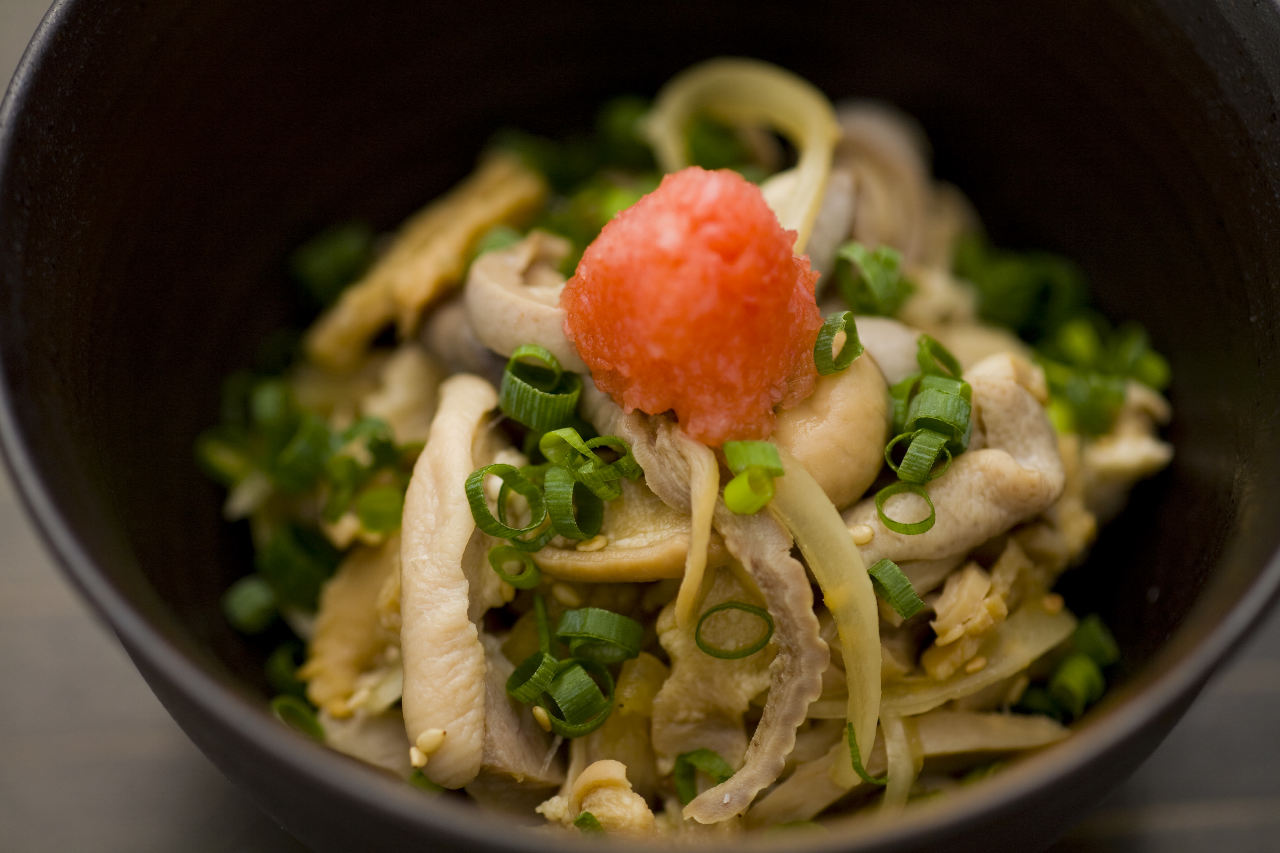 Salted cod innards seasoned with sesame oil and chilli pepper, etc.