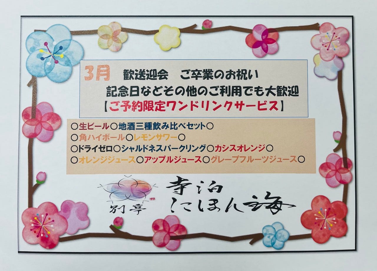 ●If only reserving seats The following rules will be applied in the case of canceling reservation. Course Reservations Cancellation on the day of the reservation(without prior notice):100% Table Reservations(Per person) Cancellation on the day of the reservation(without prior notice):4000JPY Cancellation on the day of the reservation(with prior notice):2000JPY |