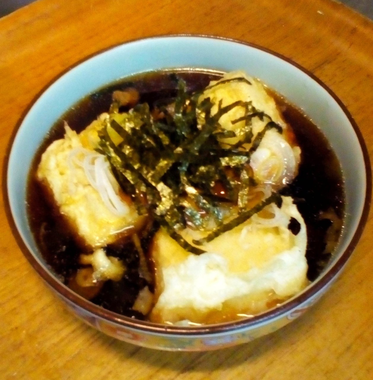 Tofu that is chilled and served with condiments and soy sauce.