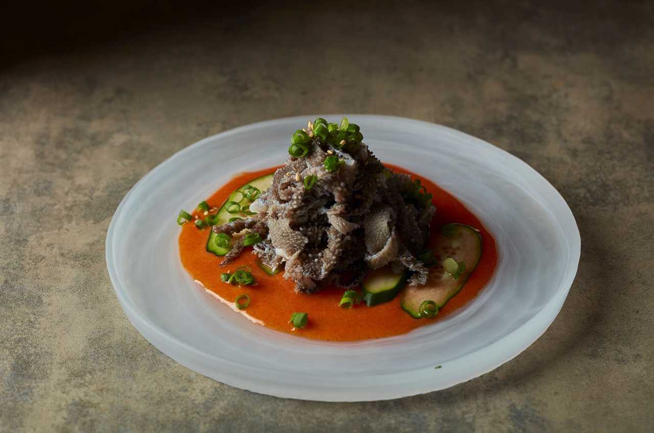 Meat dish made using a cut from the stomach called "Hachinosu."