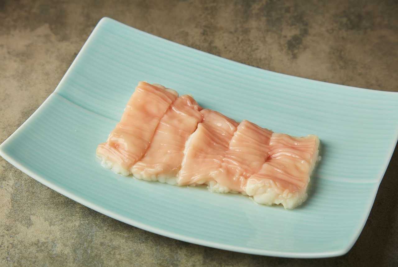Senmai (a part of the stomach) is prepared and made into sashimi.