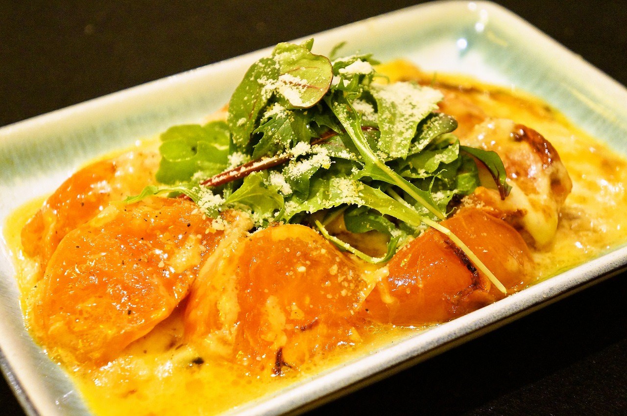A dish of beaten egg mixed with 'dashi' stock and grilled while wrapping thickly.