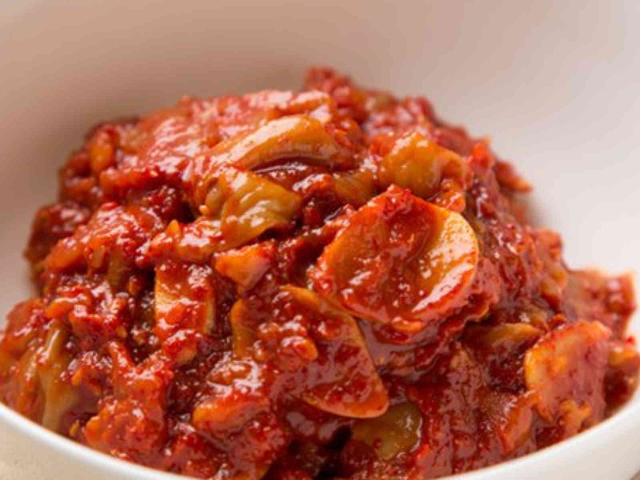 Chinese cabbage cut and marinated in kimchi seasonings.