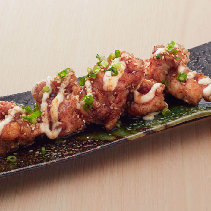 Chicken meat lightly battered and fried in oil.