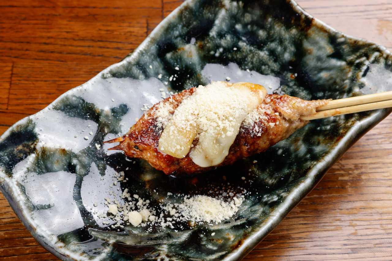 Grilled skewered sasami (chicken breast tender) with cheese