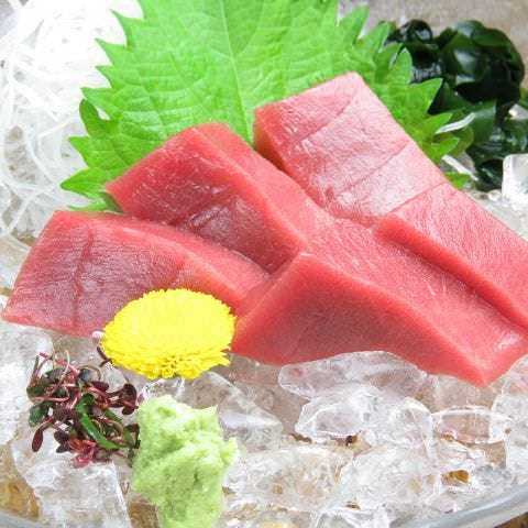 Thinly cut raw amberjack served with soy sauce.