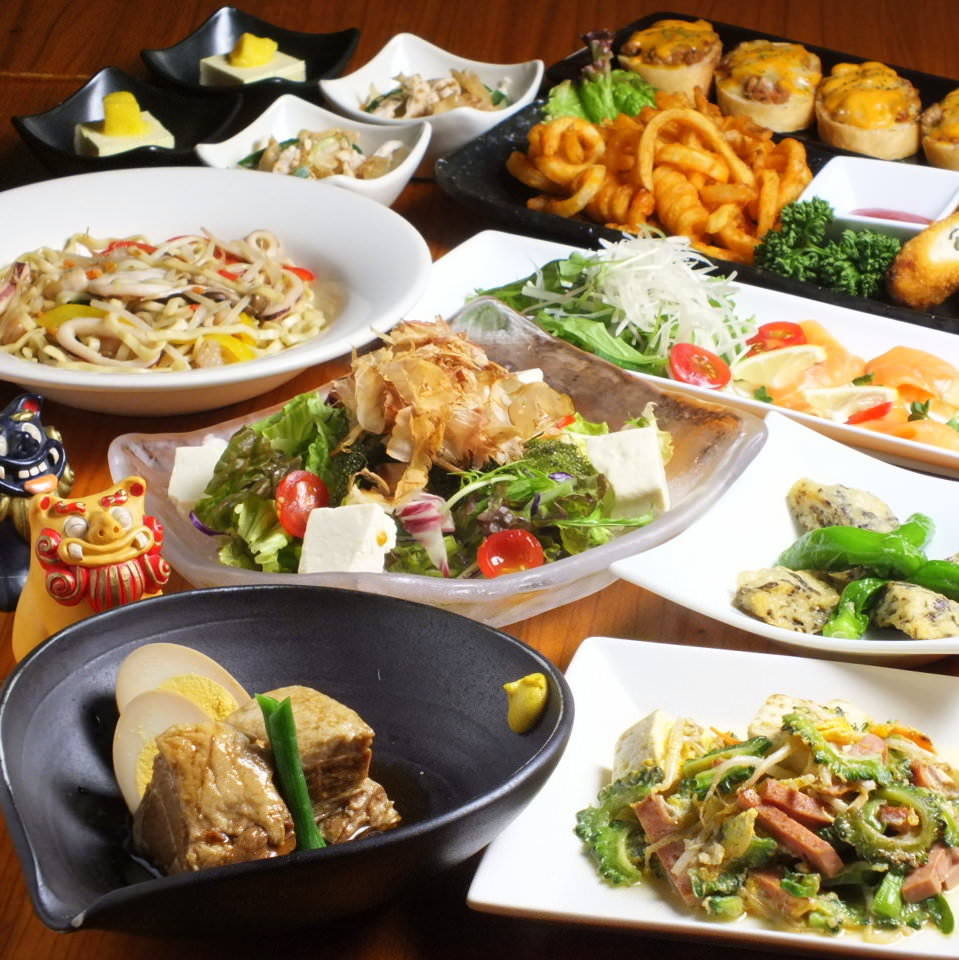 ビール : 1種類 / ウイスキー : 5種類 / 酎ハイ、サワー : 15種類 / 日本酒 : 1種類 / 焼酎 : 3種類 / 泡盛 : 13種類 / 梅酒 : 1種類 / 果実酒 : 4種類 / カクテル : 9種類 / ワイン : 1種類 / ソフトドリンク : 11種類