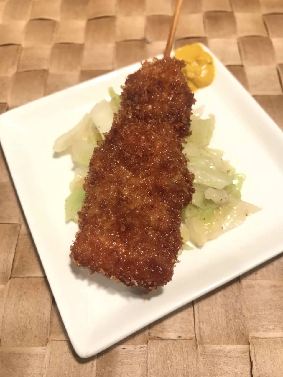 数種類の具材を串に刺し、衣をつけて油で揚げ、盛り合わせた料理。