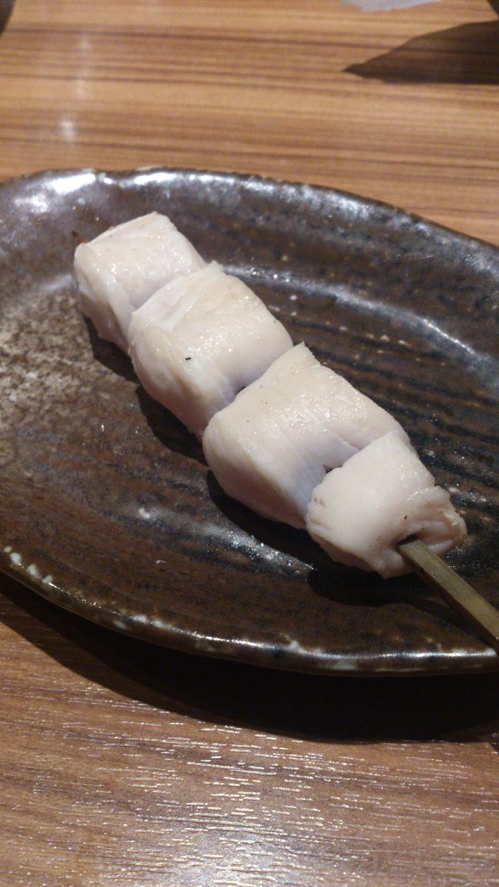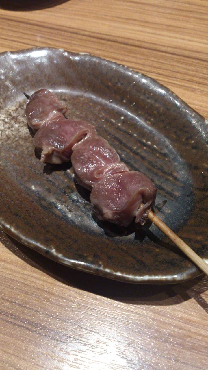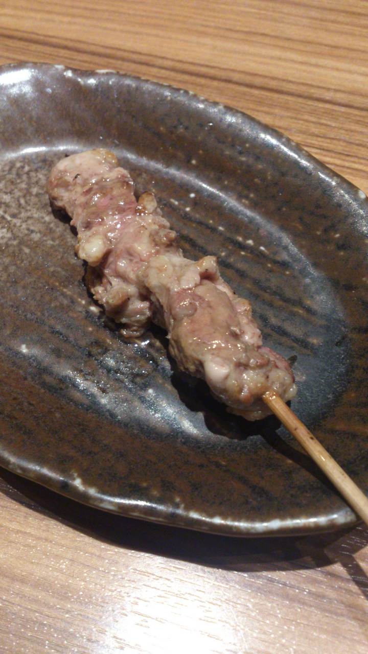 下味をつけたつなぎ(心臓と肝臓をつないでいる部分)を串に刺して直火焼きした料理。