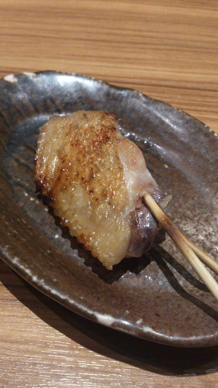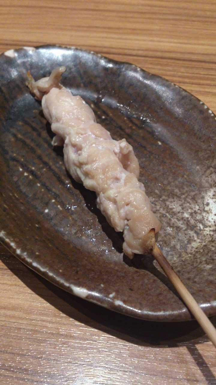 一口サイズの鶏の皮を串に刺して直火焼きした料理。