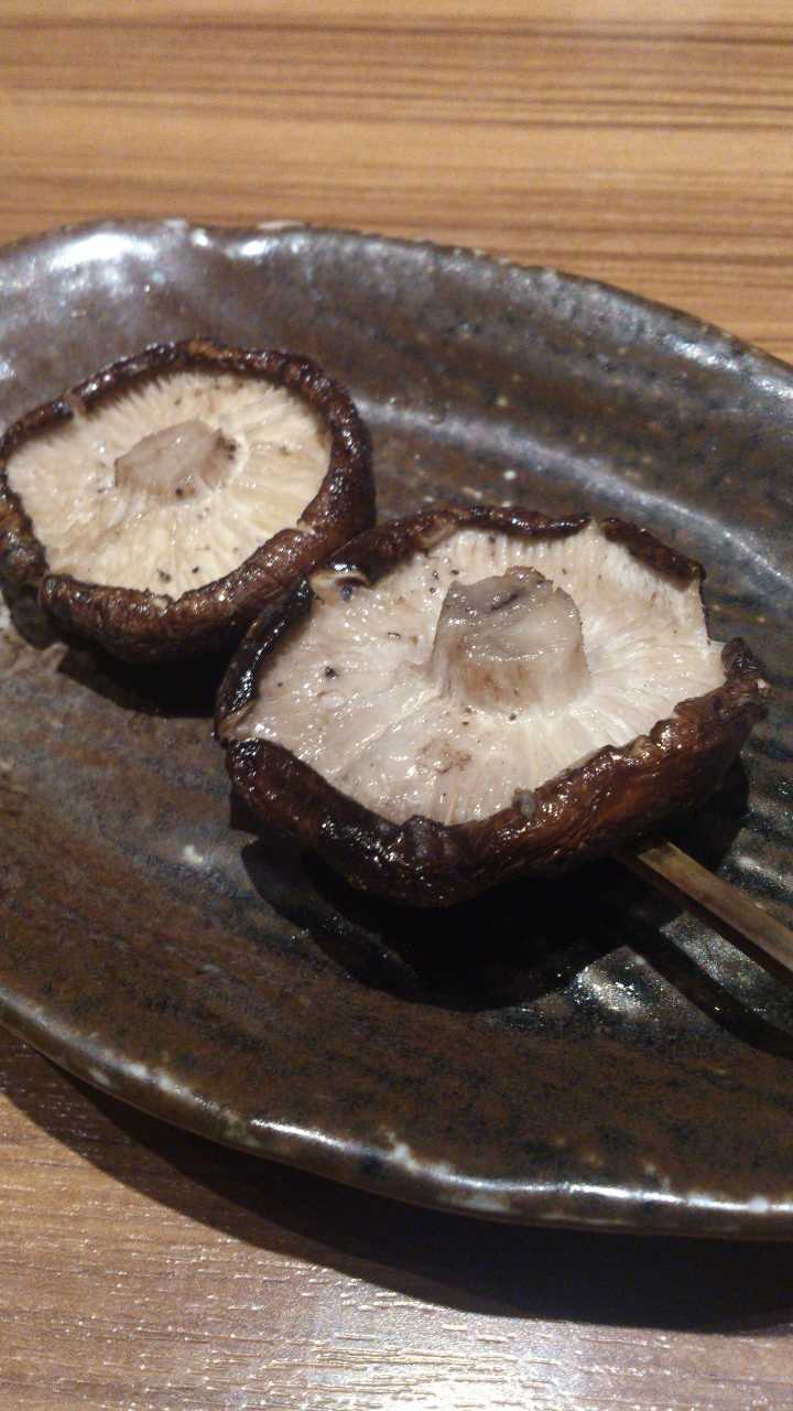 しいたけの傘の中に肉を詰めて串に刺し、直火焼きした料理。
