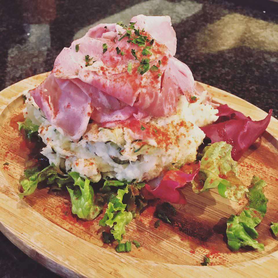 おかんポテサラ 山盛り自家製ももハムのっけ