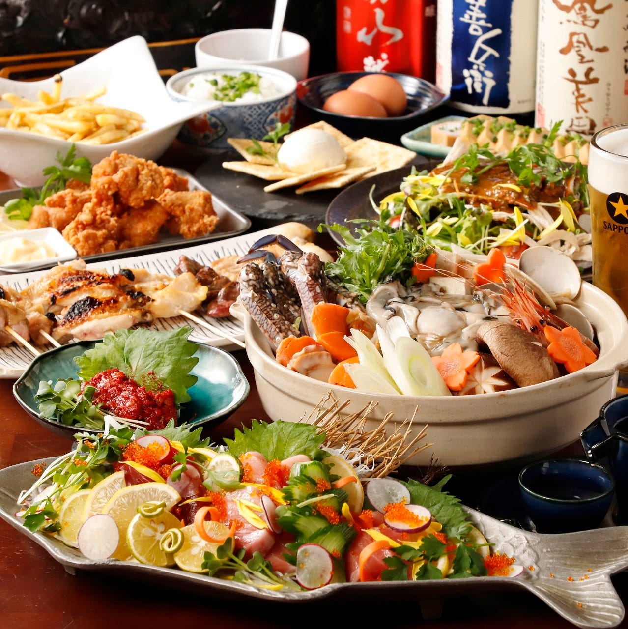 Proudly serving grilled skewer with carefully selected Japanese chicken and fresh, seasonal vegetables freshly stocked directly from the farm on a daily basis. The extensive menu also includes sashimi made with fantastically fresh and seasonal fish, a range of creative cuisine which goes amazingly well with alcoholic beverages, and much more!