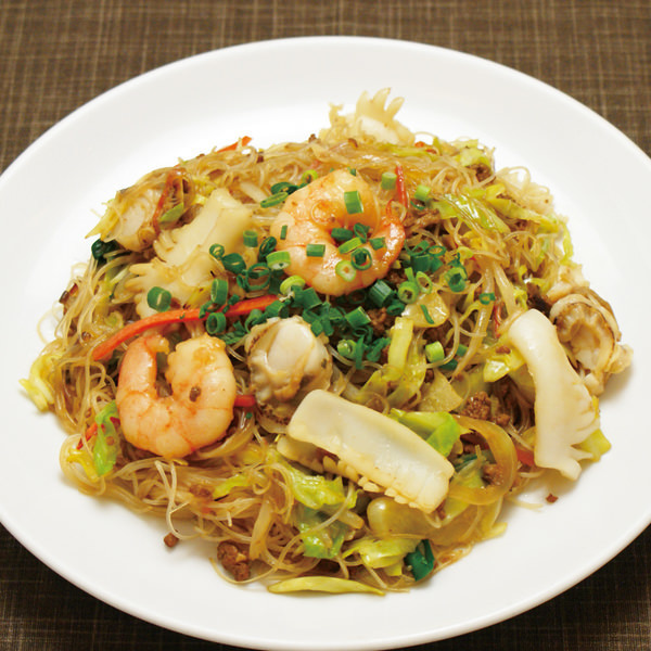 豚肉, 海老, イカ, にんじん, しいたけ, ビーフン
