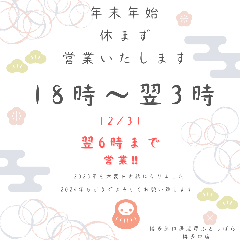 月~木・日 ディナー:18:00~翌3:00(L.O.2:30) 金・土 ディナー:18:00~翌6:00(L.O.5:30)