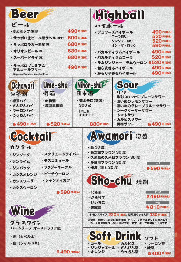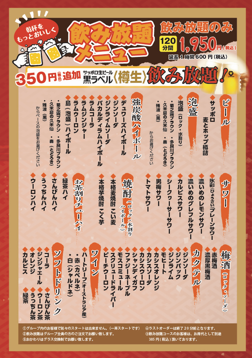 飲み放題メニューあり