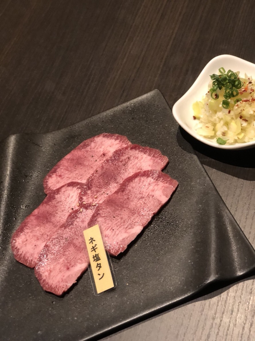 タンと呼ばれる舌の部分を塩で味付けしてネギをのせた肉料理。