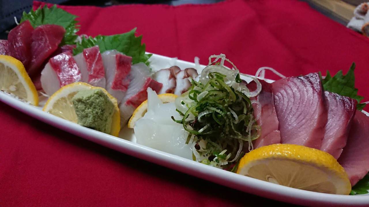 鶏もも肉の表面を炙って、醤油や薬味などをつけて食べる料理。