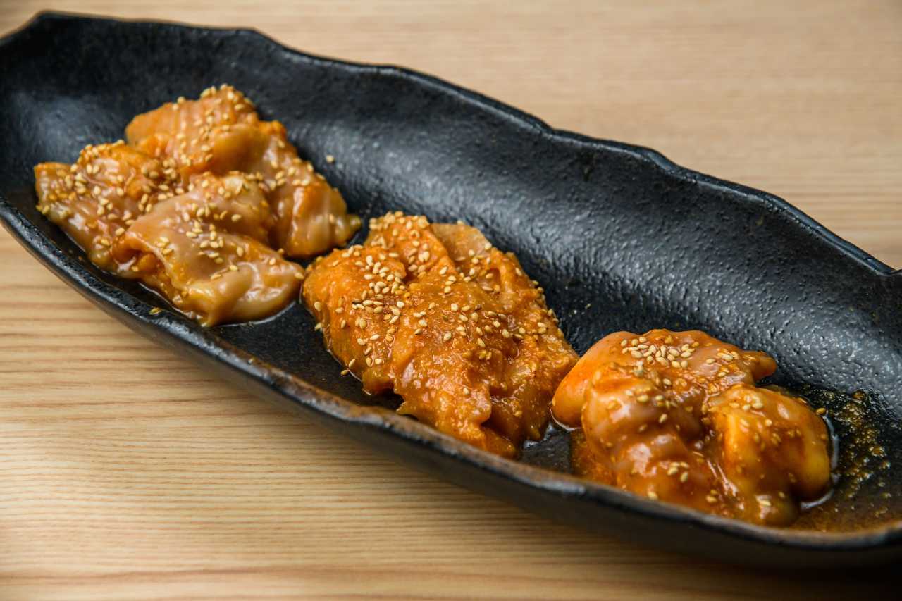 ミスジと呼ばれる牛の肩の部分を鉄板でさっと焼いた料理。