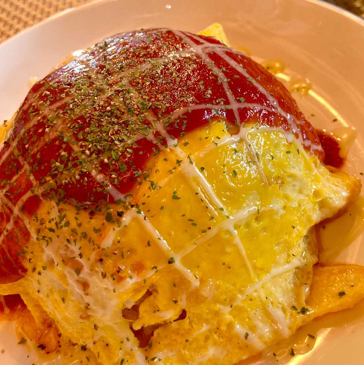 ご飯に、牛すじと一緒に煮込んだカレーをかけた料理。