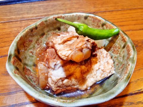 厚切りの豆腐を軽く揚げた厚揚げは、煮込み料理に使われる。