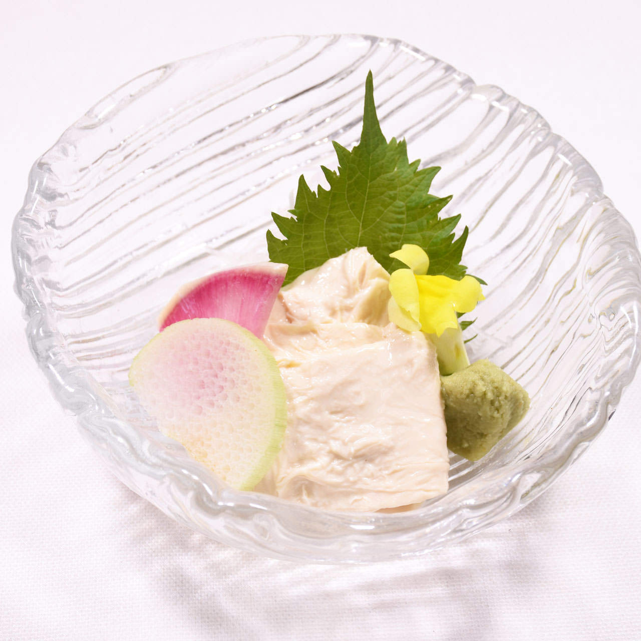 日によって提供する種類が変わる生の白身魚の身を薄く切り、醤油などで食べる料理。