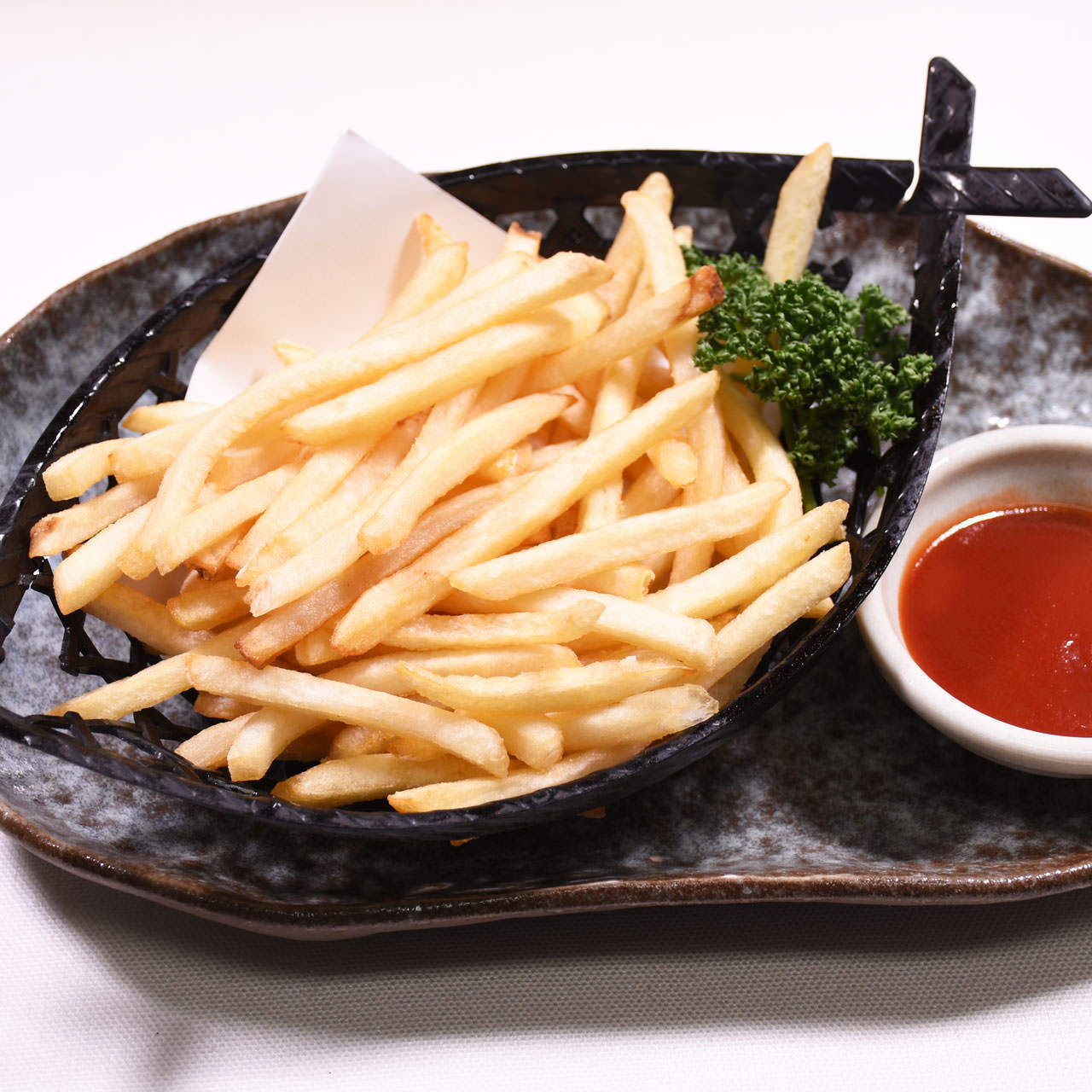 魚介類、野菜等の食材に衣をつけて油で揚げ、盛り合わせた料理。