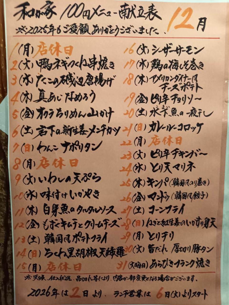 毎週月曜日