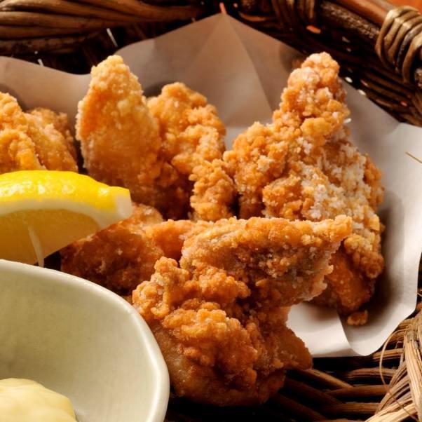 とらふぐの身やアラを醤油と酒に漬け、小麦粉をつけて油で揚げた料理。